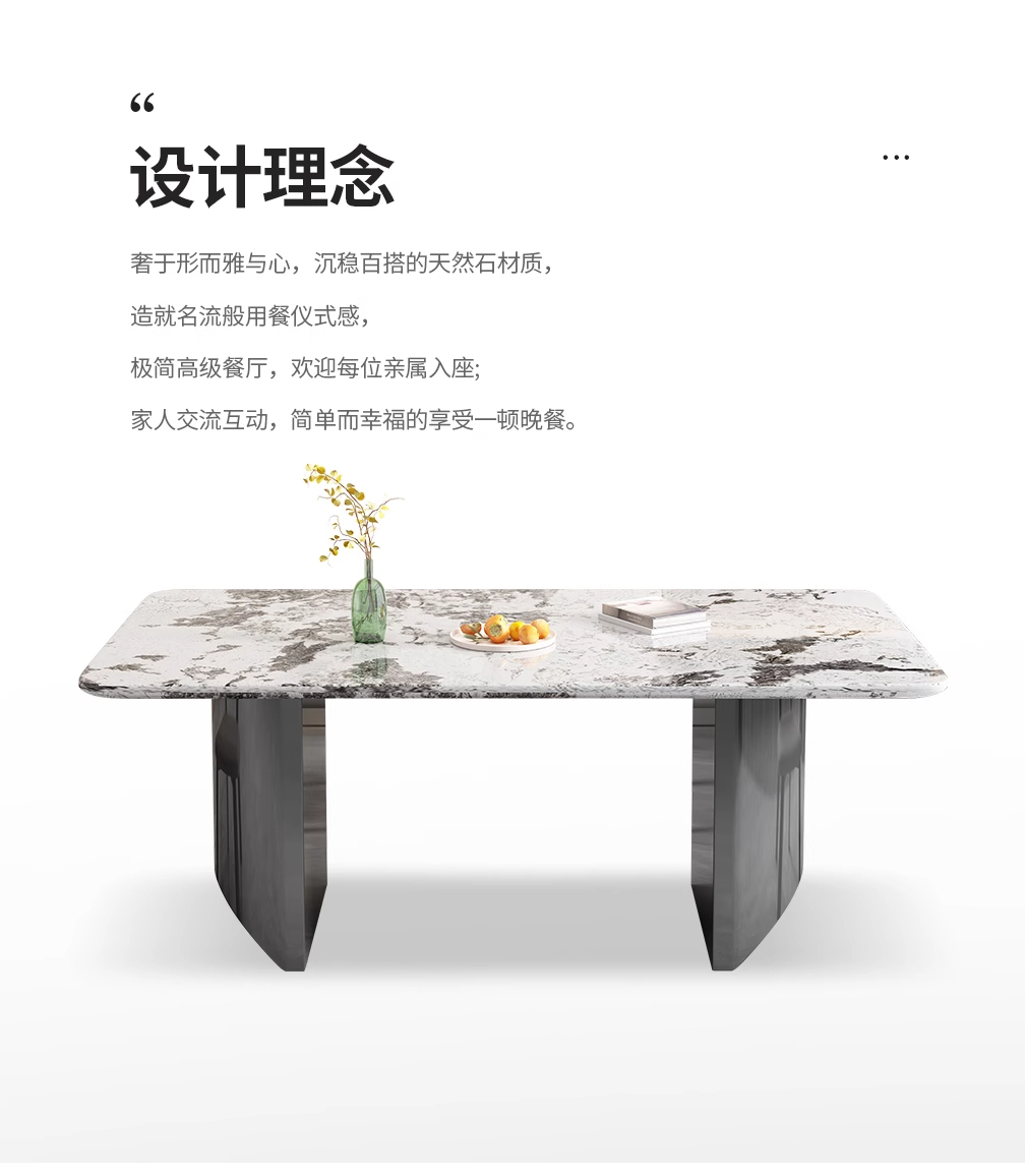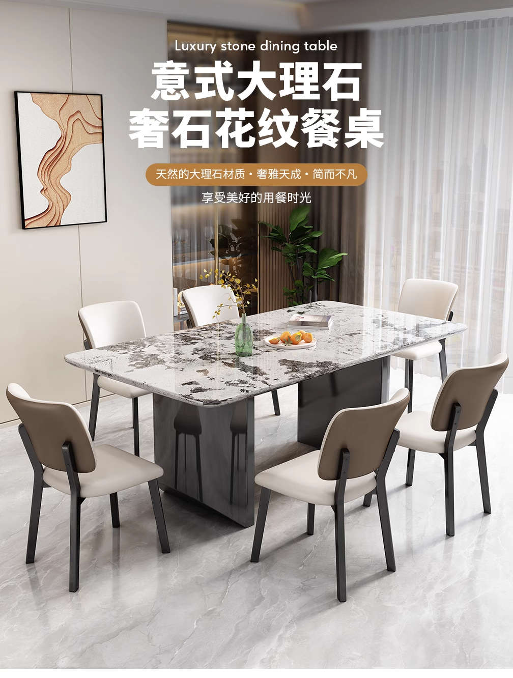 意式轻奢大理石餐桌极简高端奢石天然大理石长方形大小户型吃饭桌