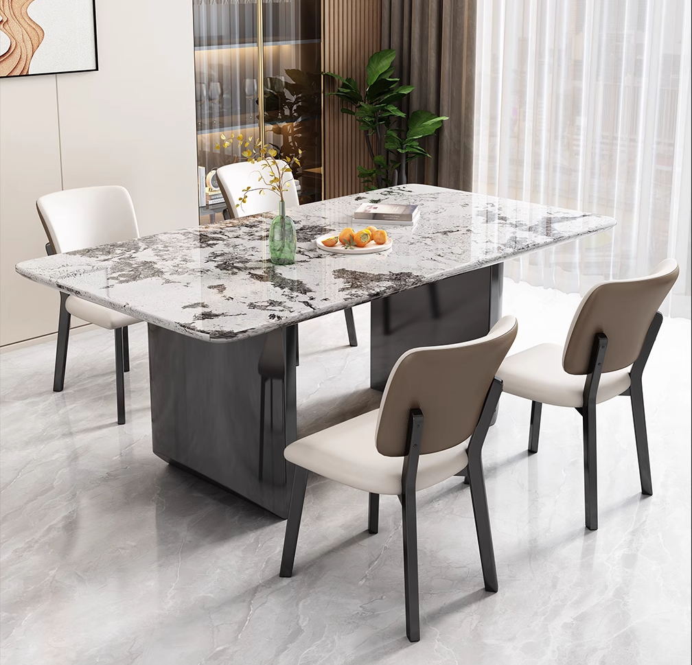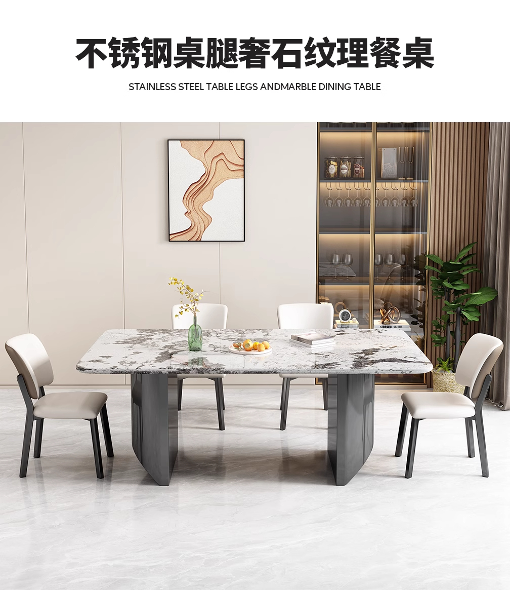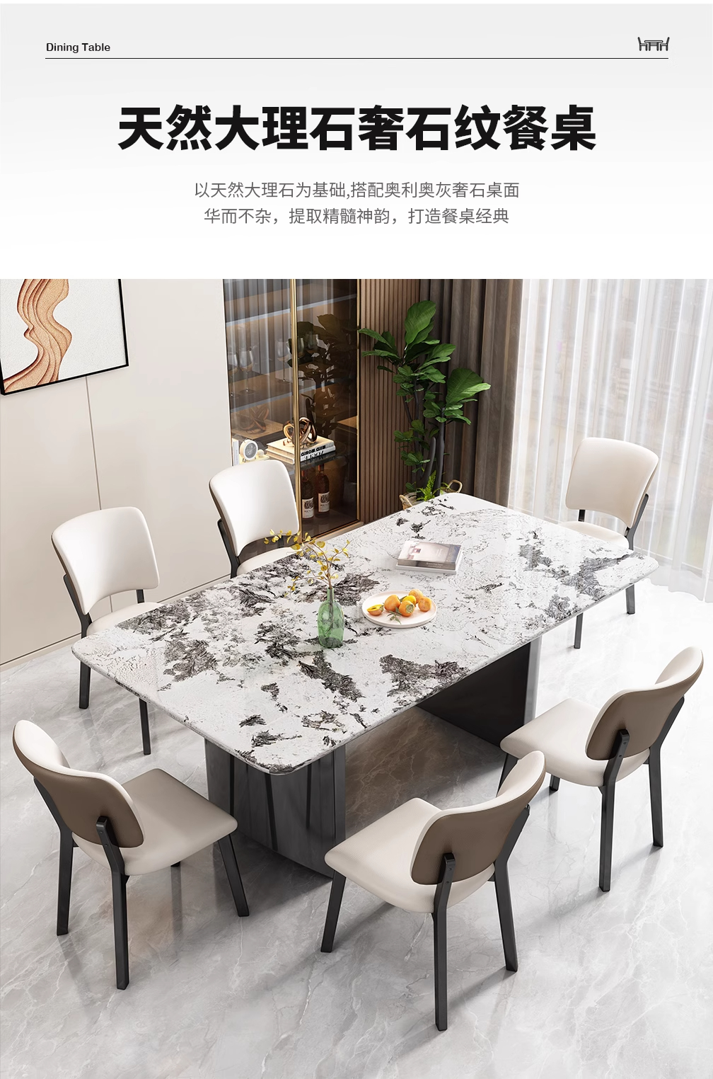 家用长方形小户型轻奢简约简约现代2024新款大理石奢石餐桌椅组合