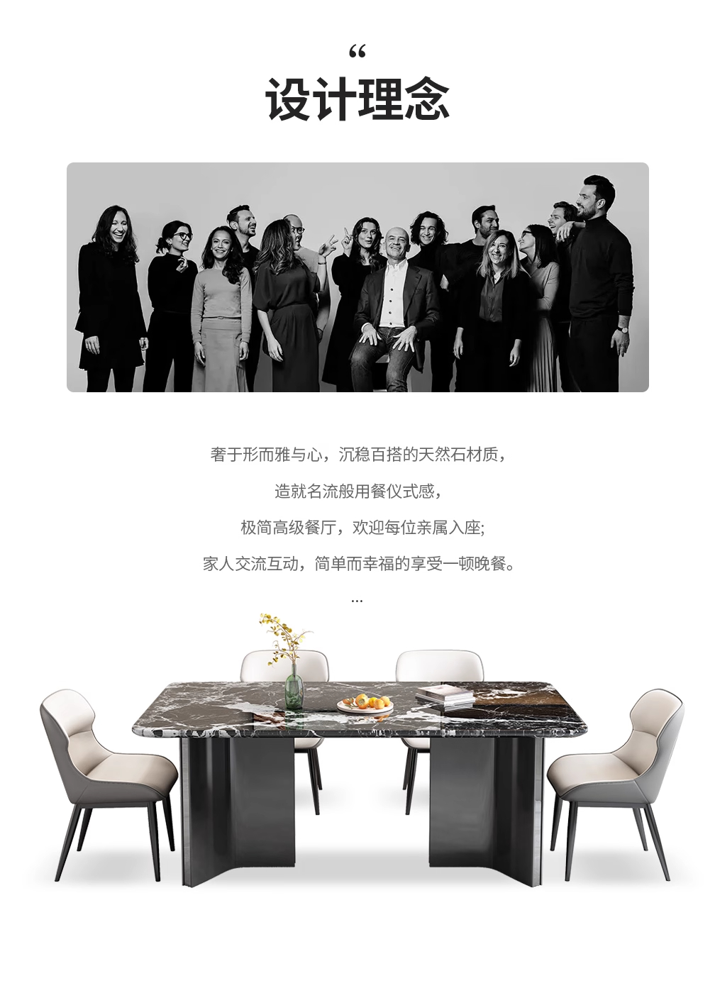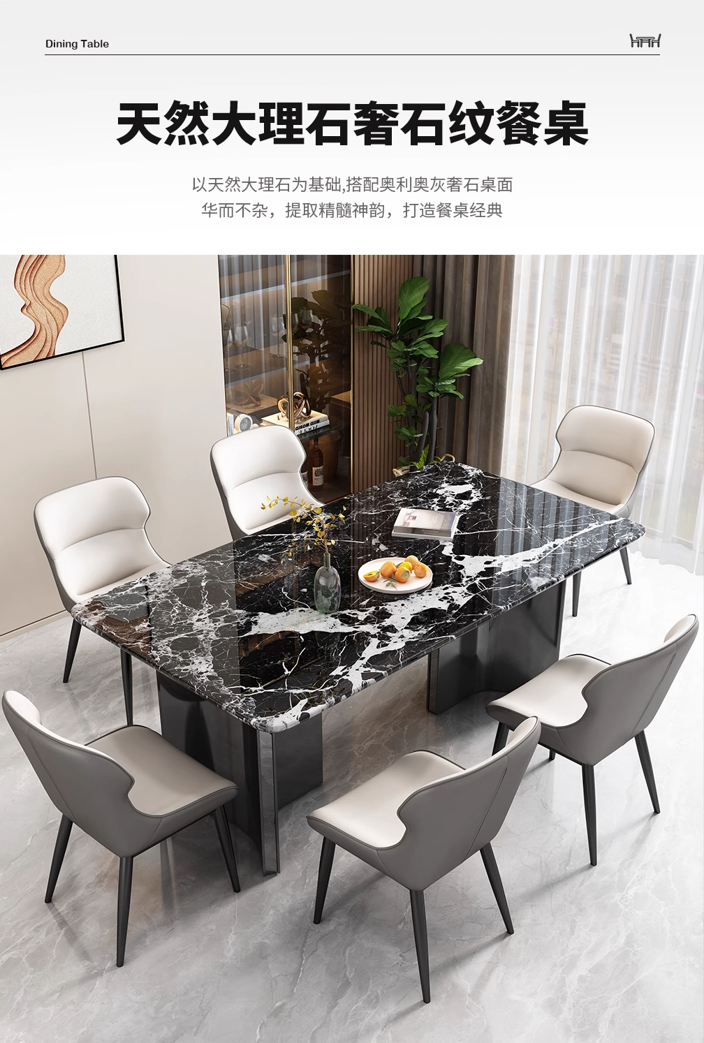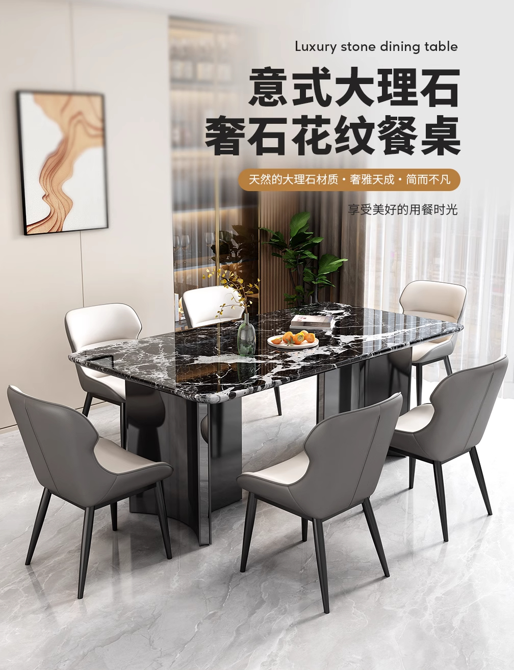 意式轻奢大理石餐桌极简高端奢石天然大理石长方形大小户型吃饭桌