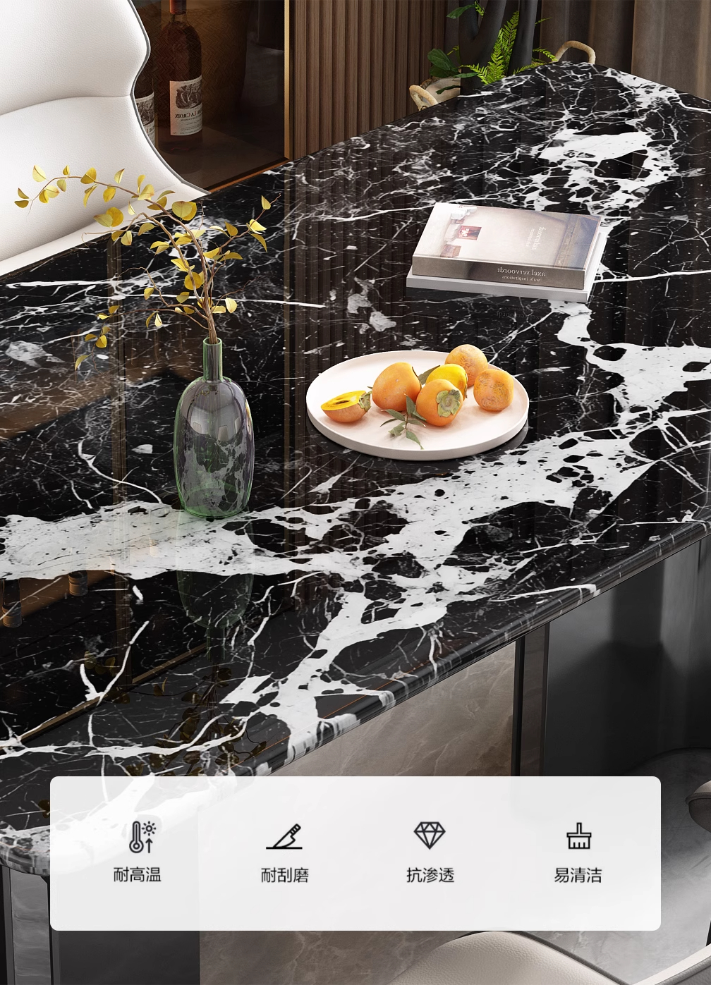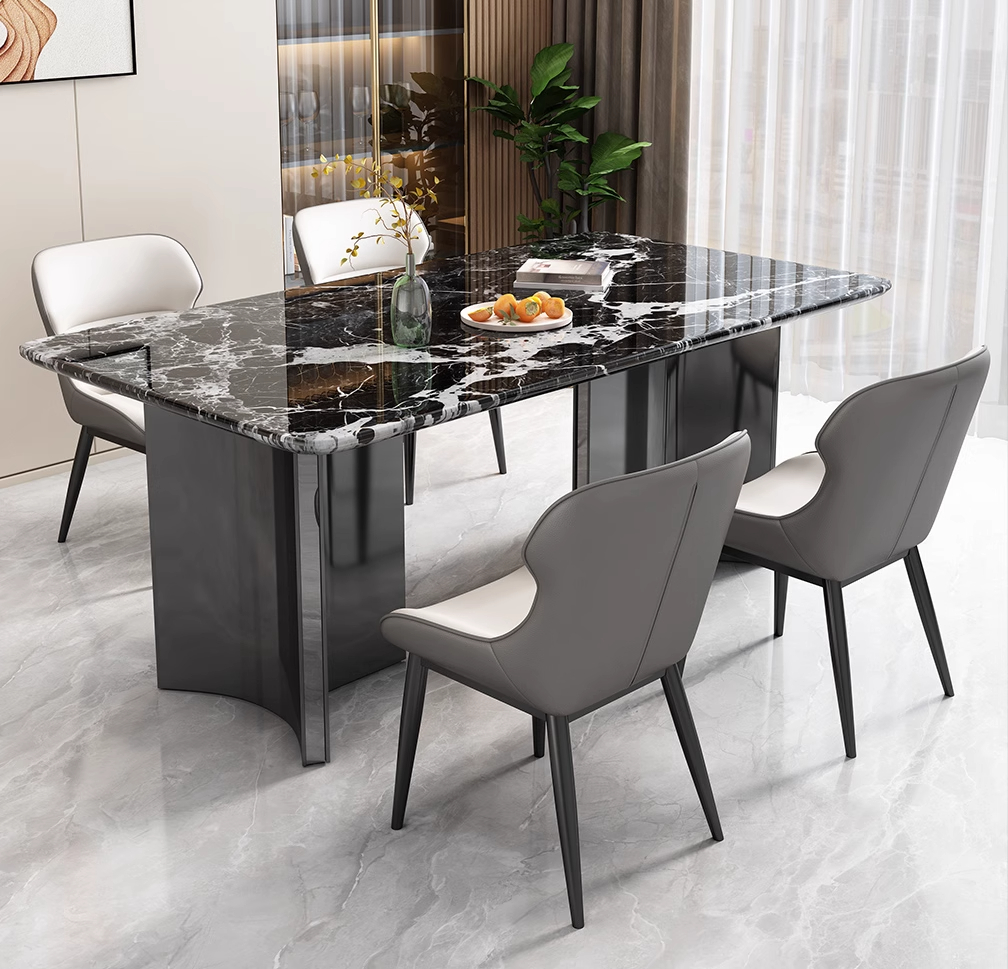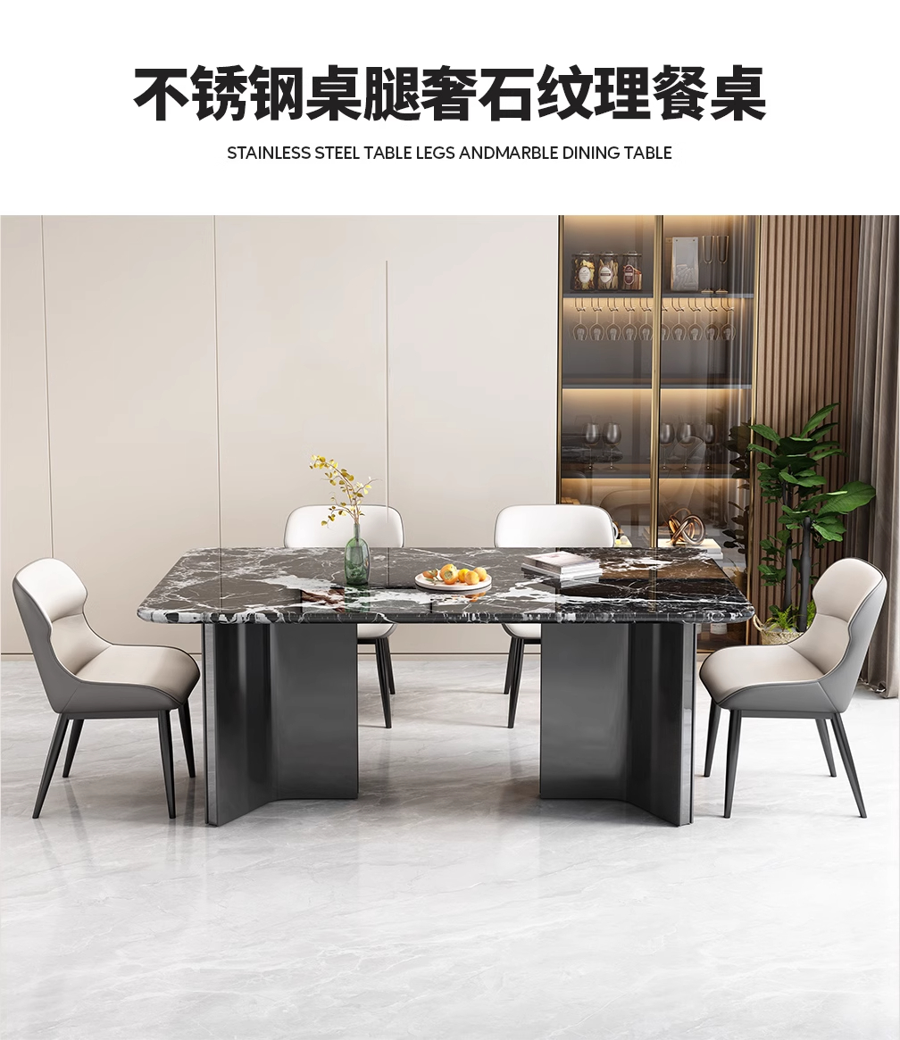 家用长方形小户型轻奢简约简约现代2024新款大理石奢石餐桌椅组合
