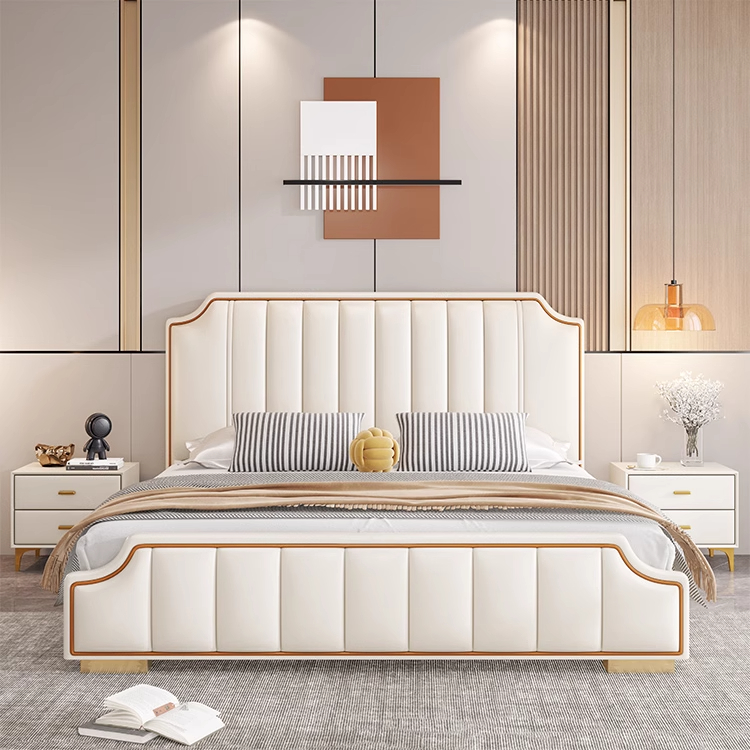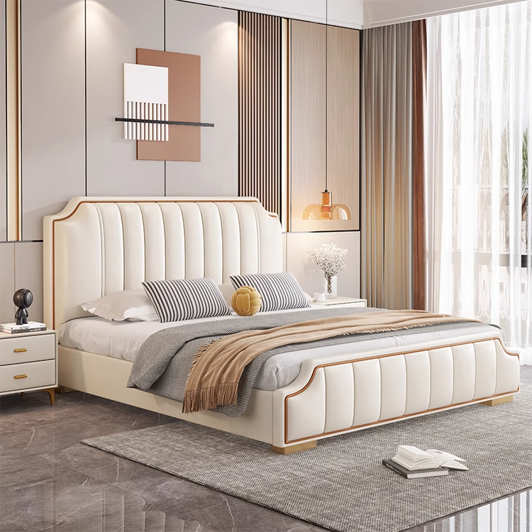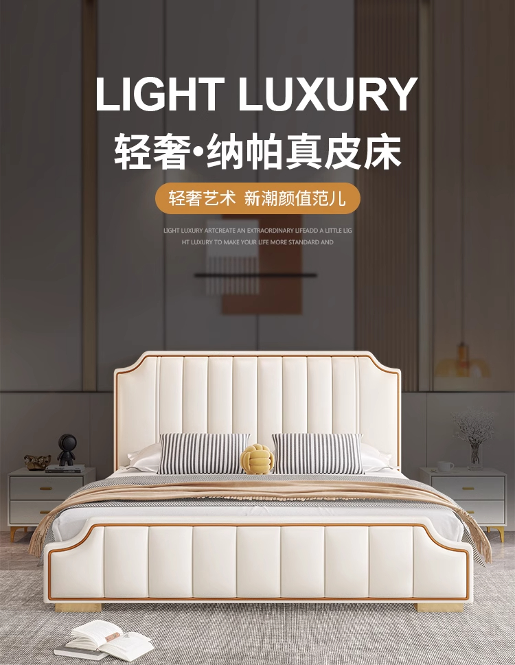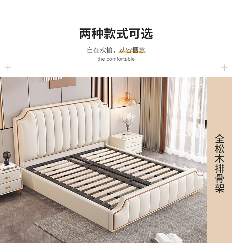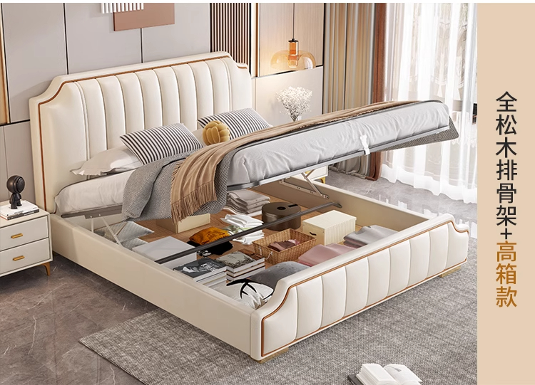 意式轻奢床1.8米双人床2024新款现代 排骨架高箱储物主卧真皮皮床