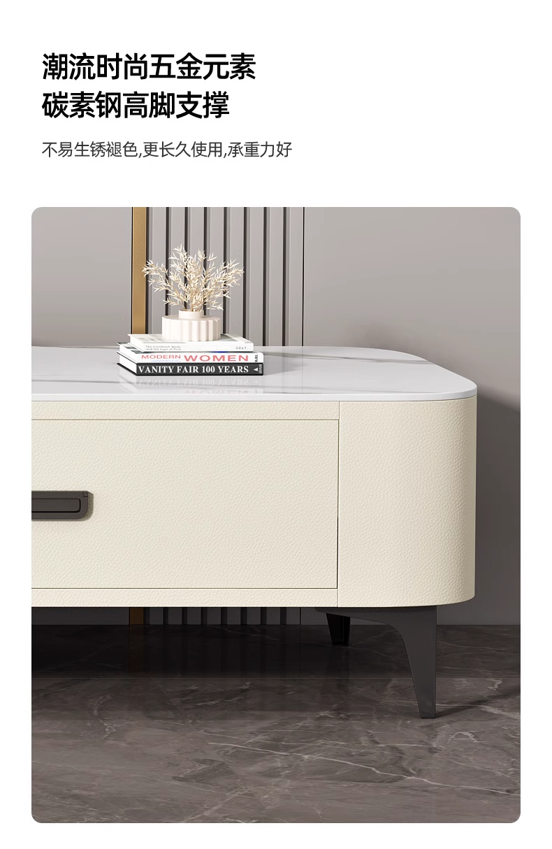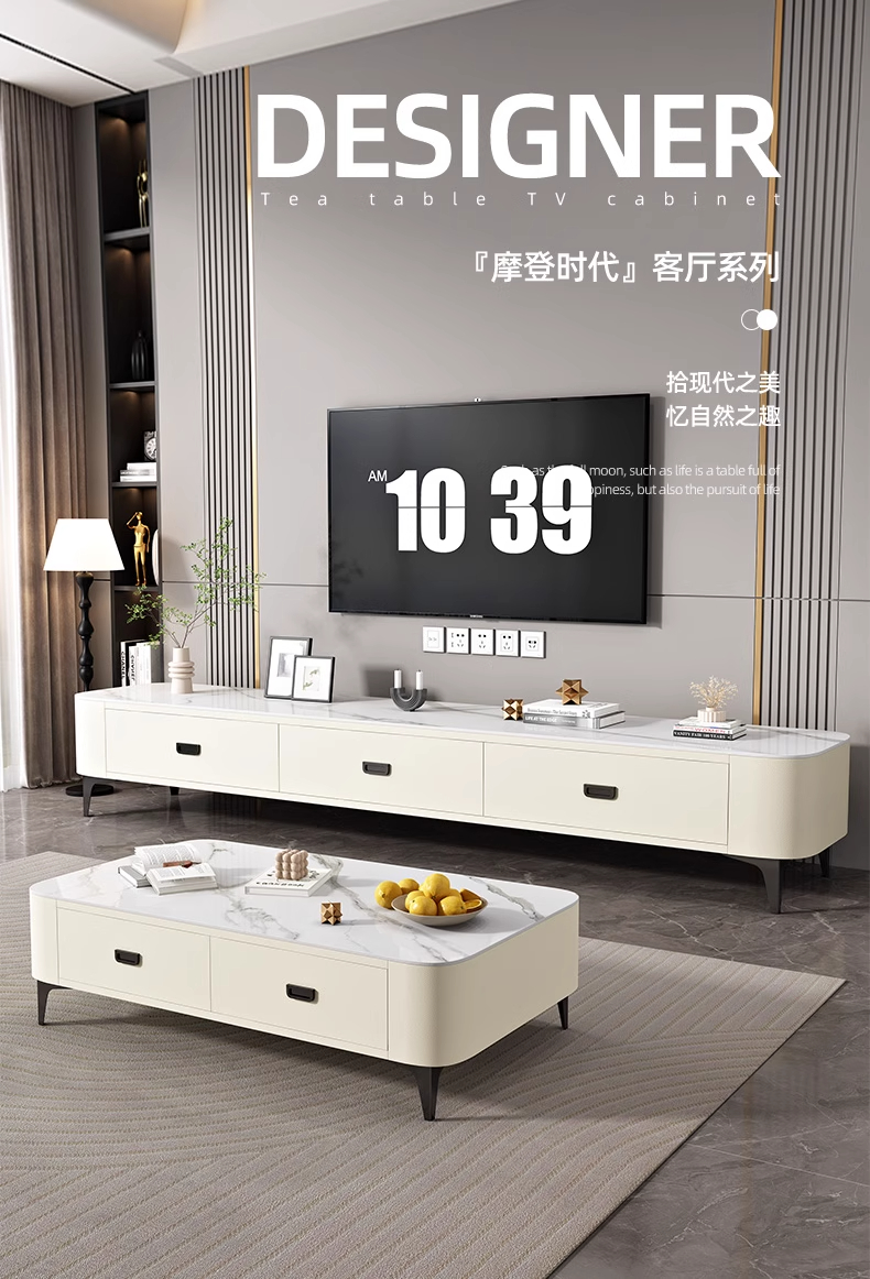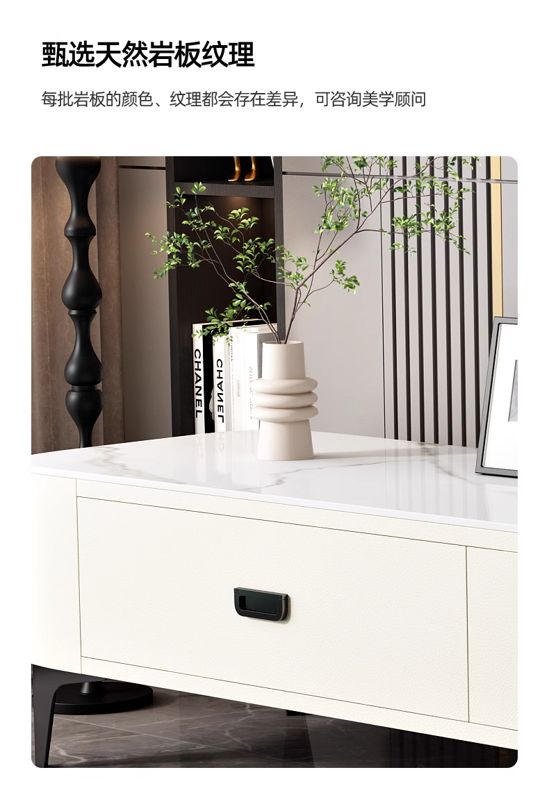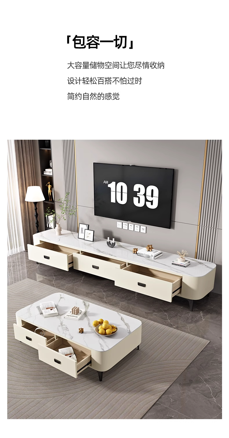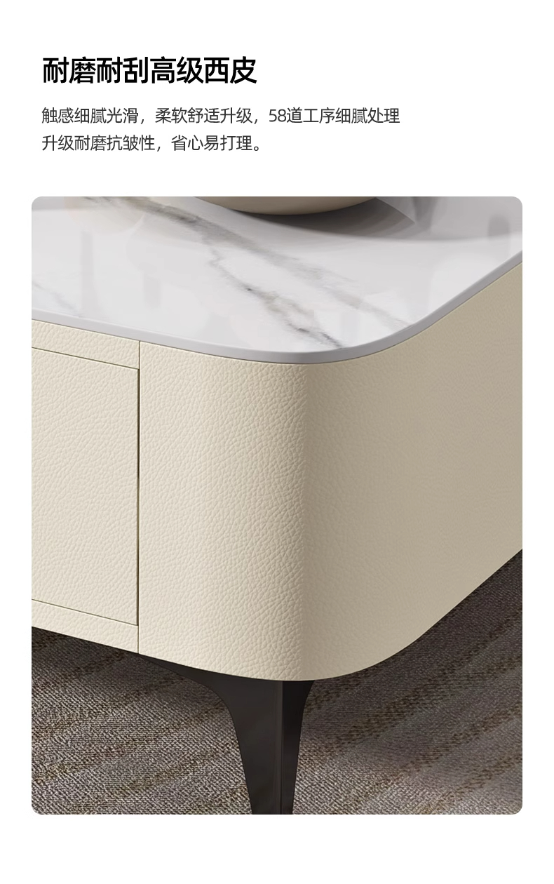 极简轻奢岩板茶几电视柜2024新款猫抓皮家用客厅小户型奶油风茶几