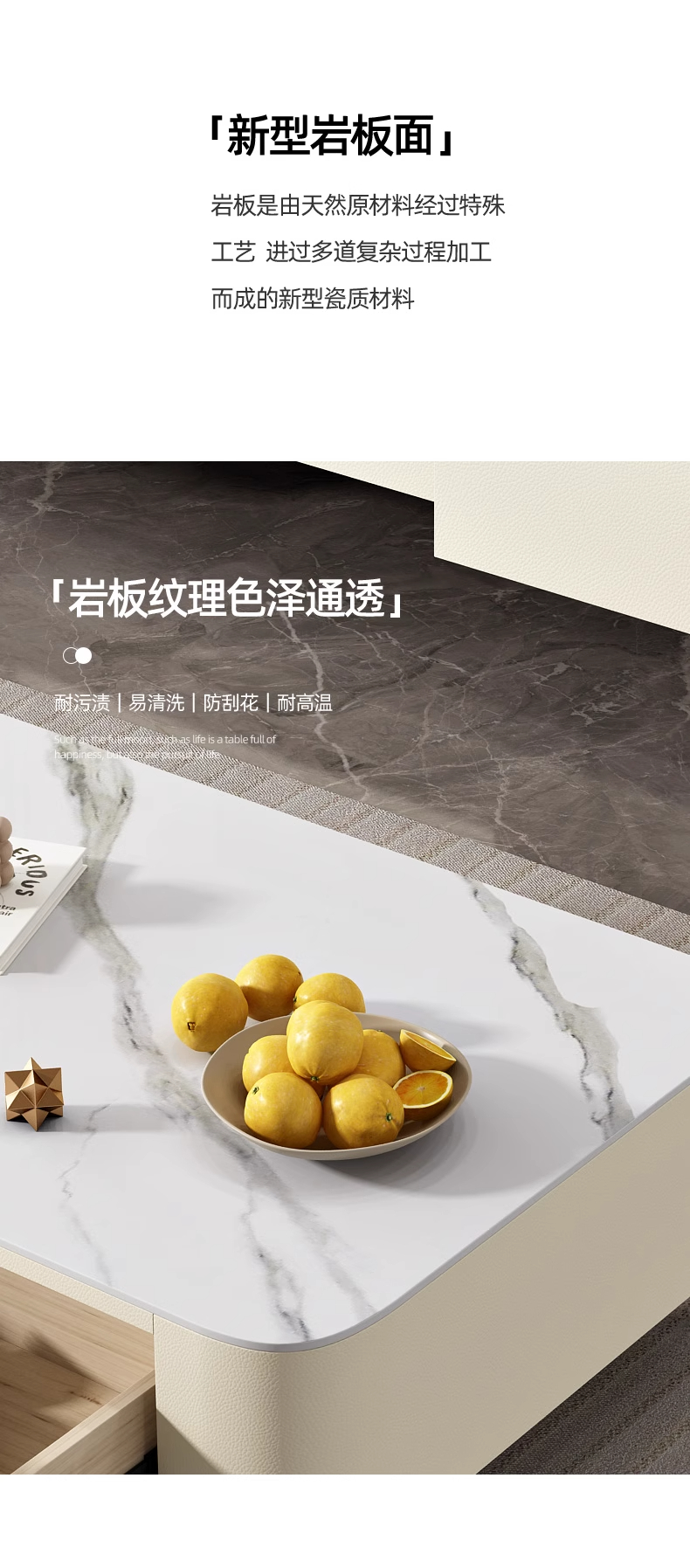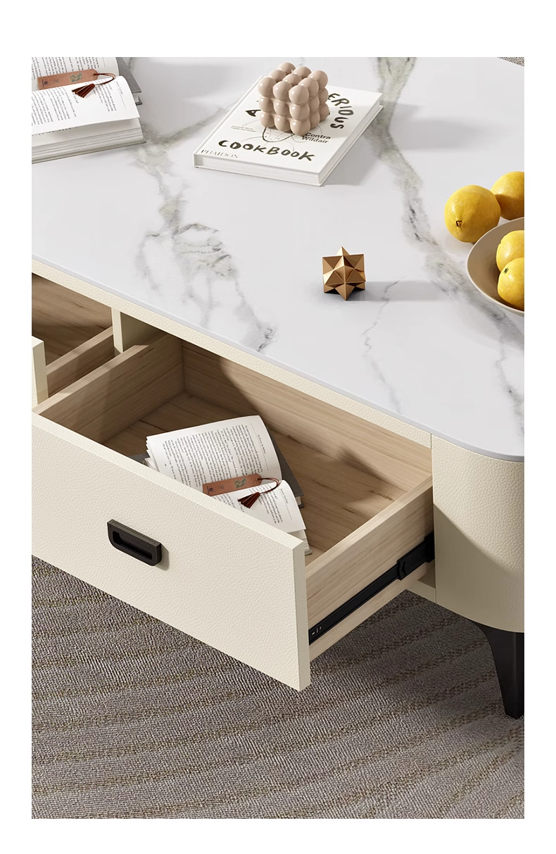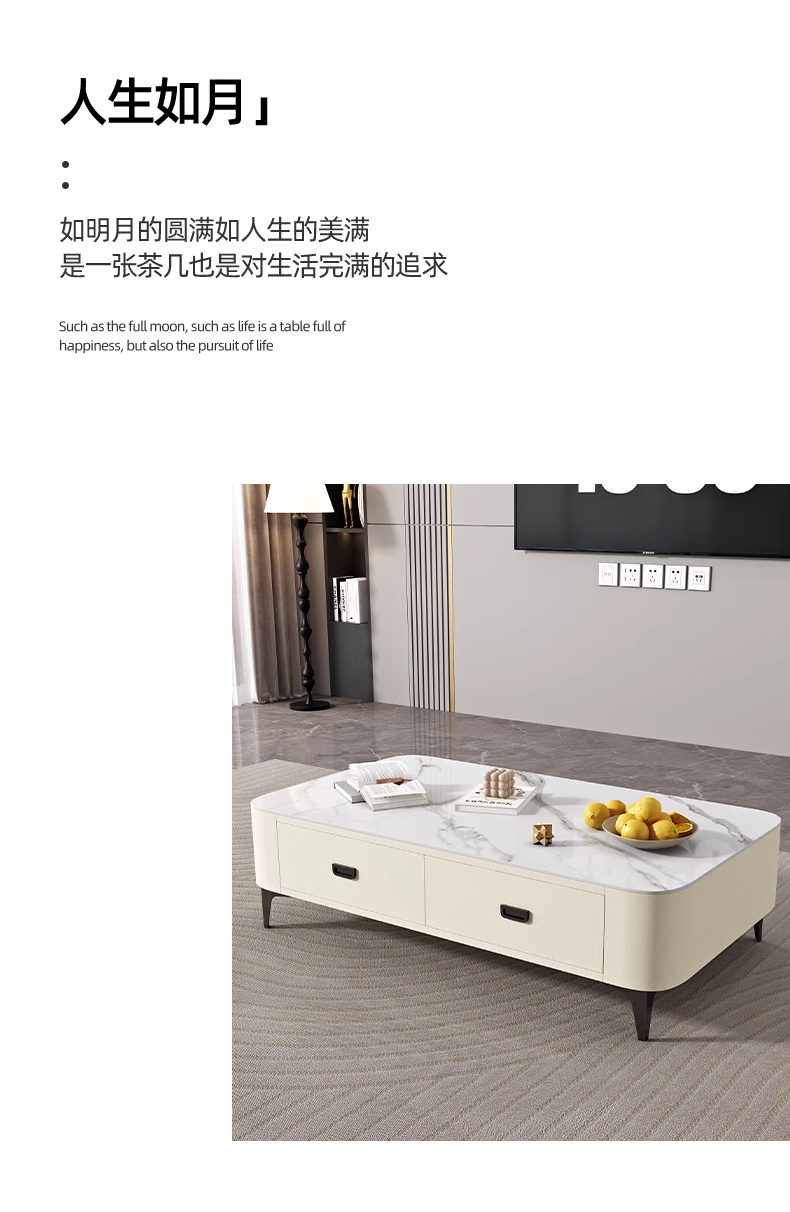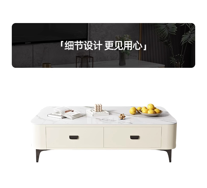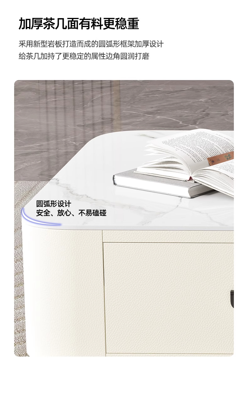 极简轻奢岩板茶几电视柜2024新款猫抓皮家用客厅小户型奶油风茶几
