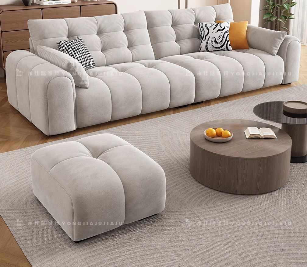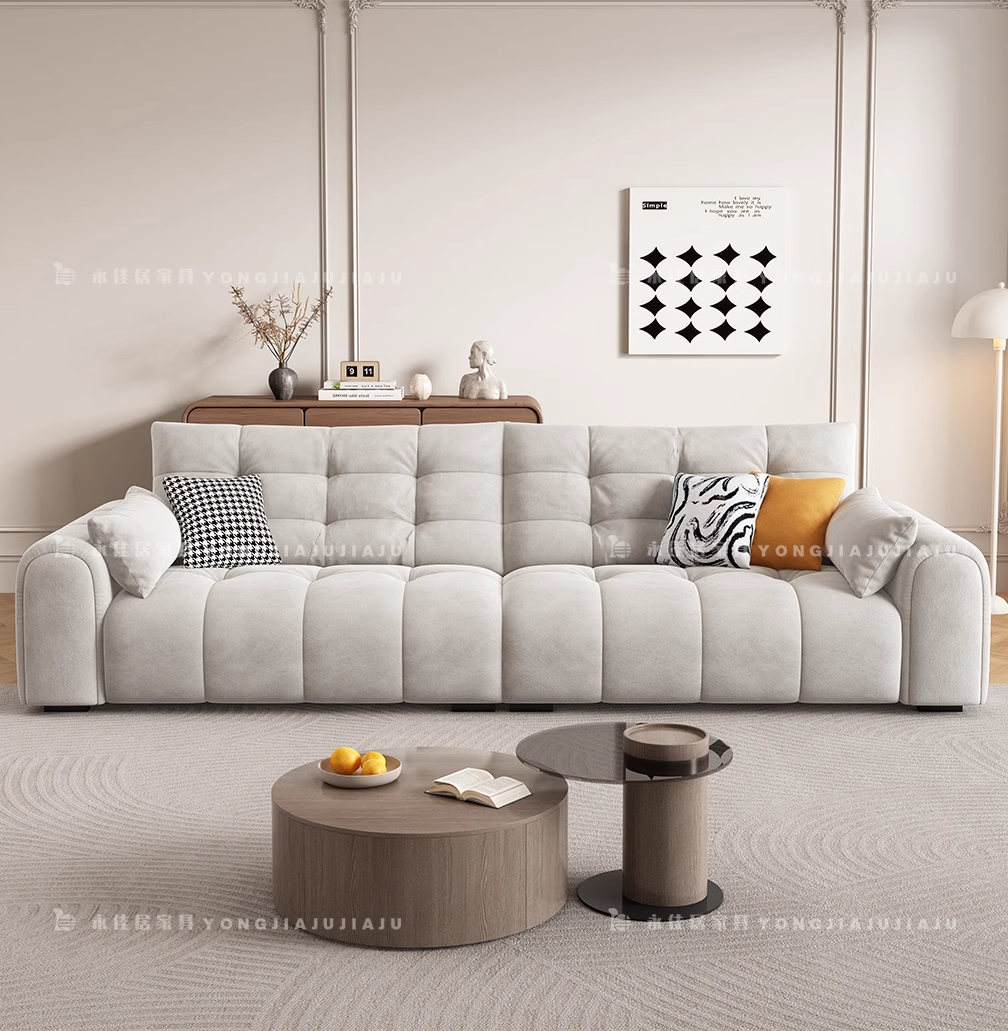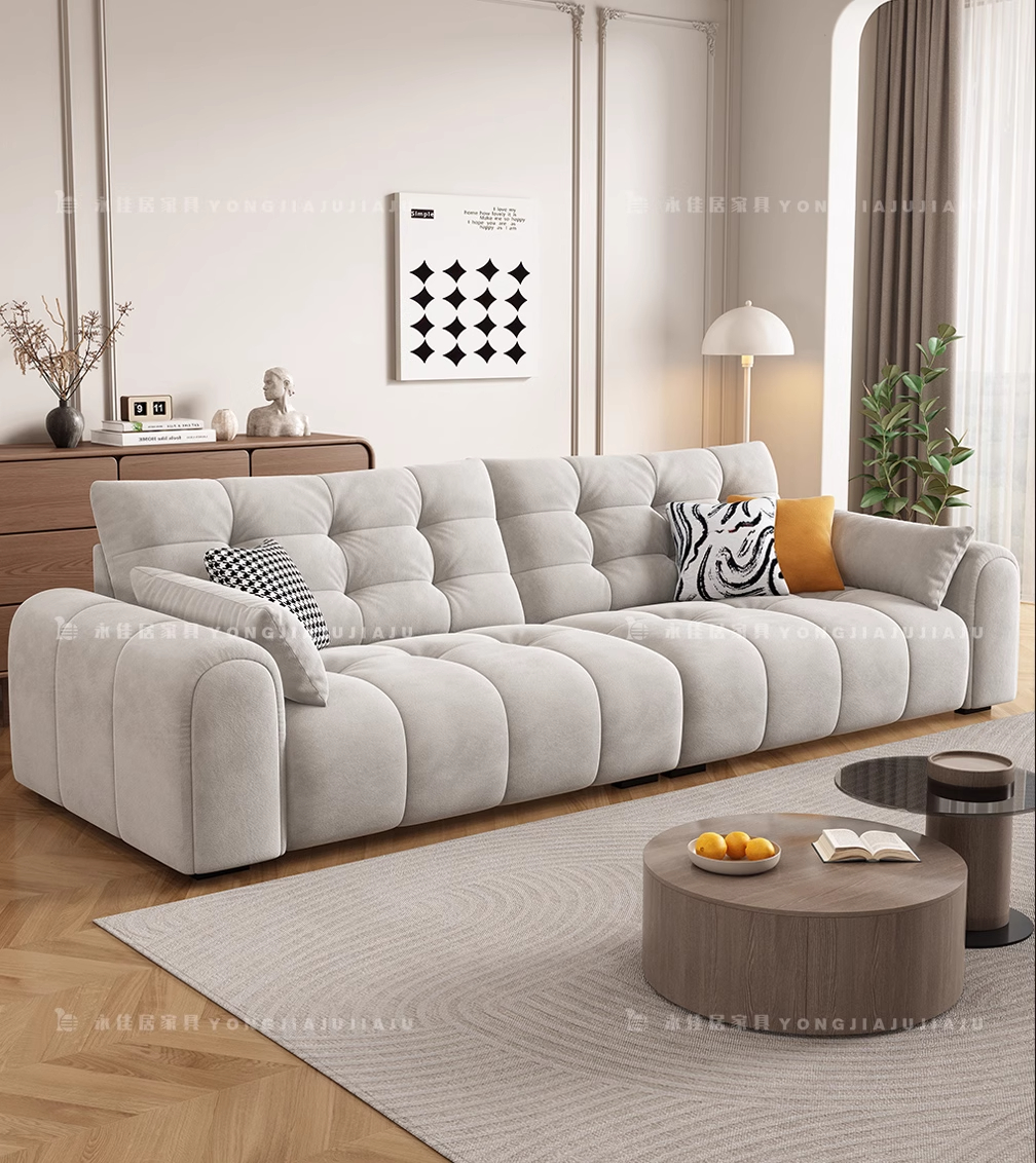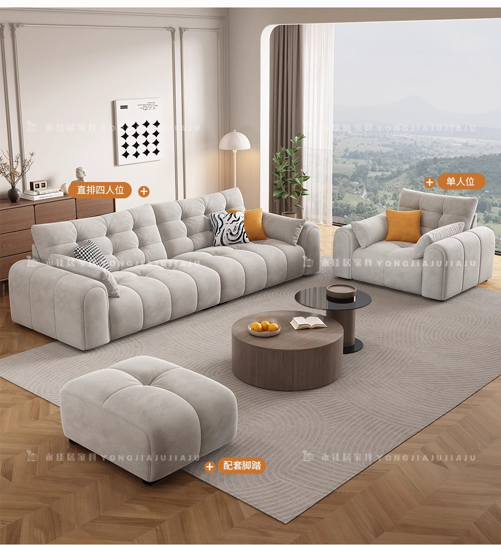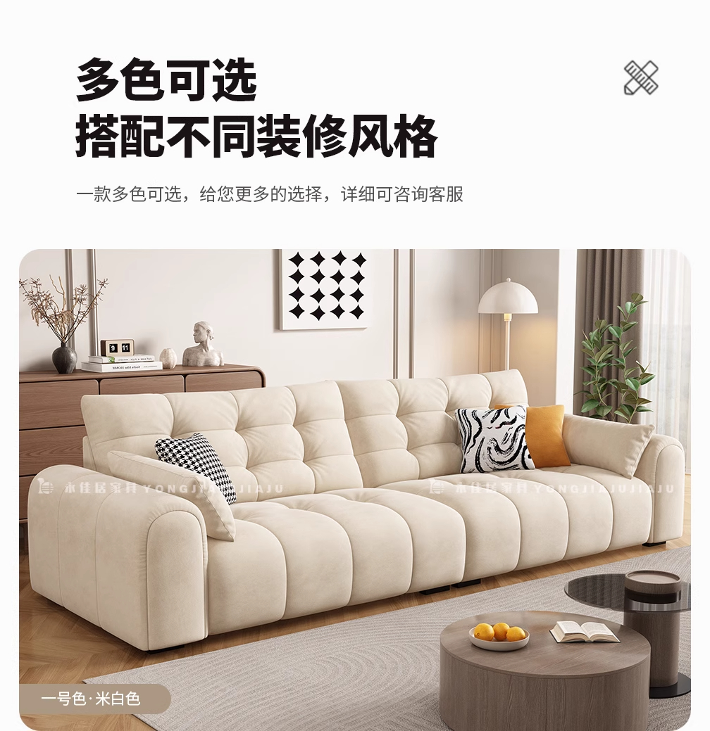 北欧意式极简奶油风简约客厅小户型奶油网红绒布三四人位直排沙发