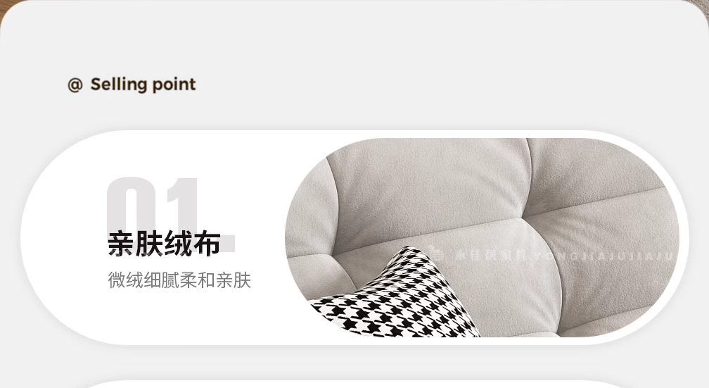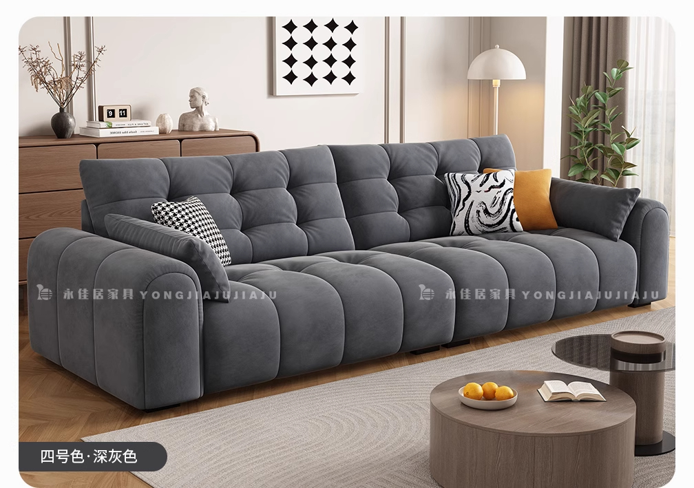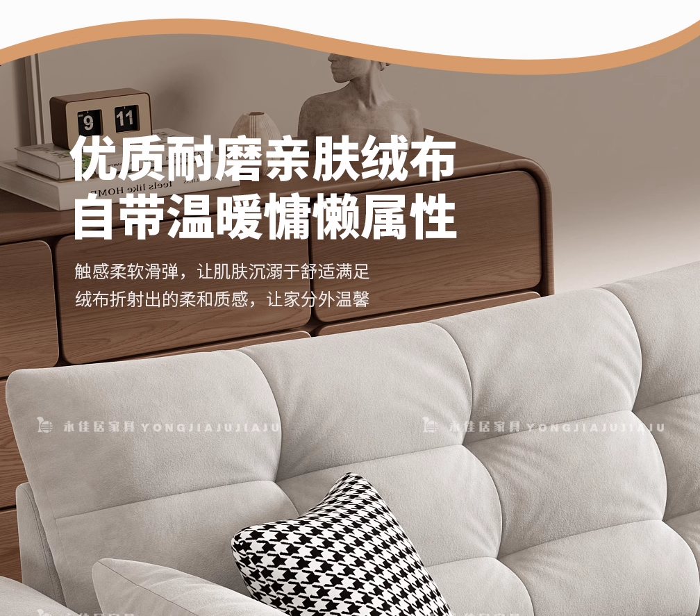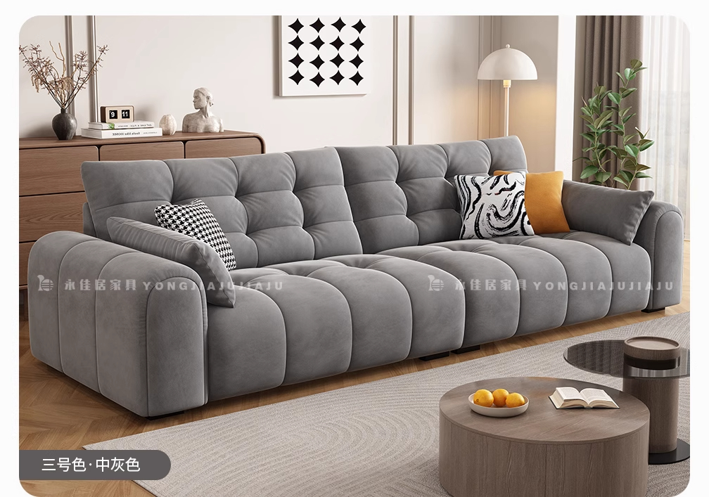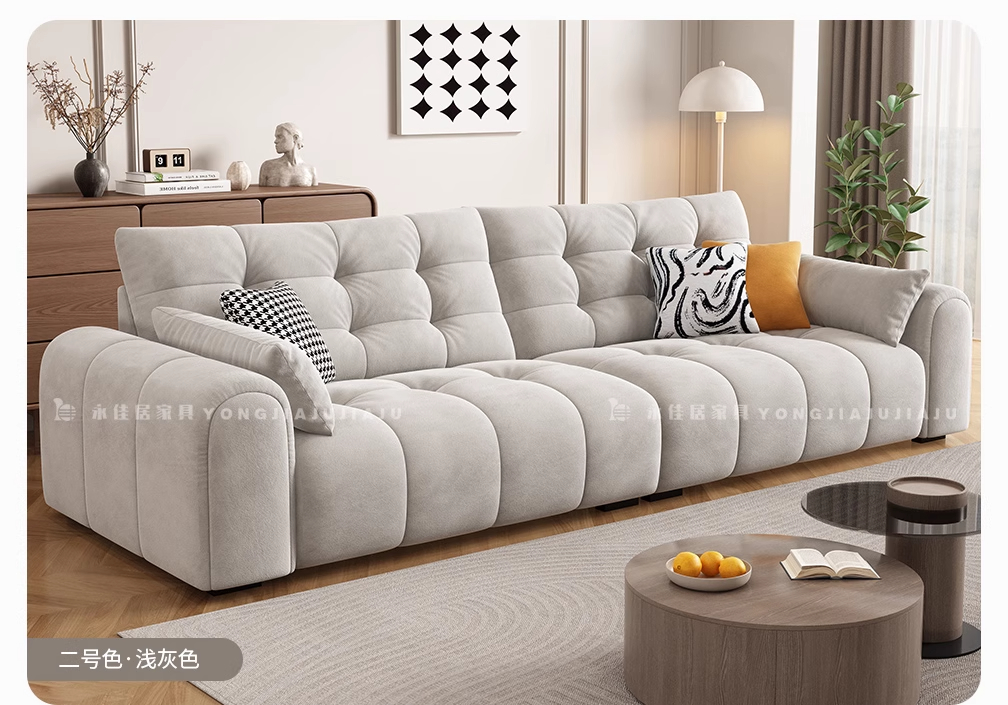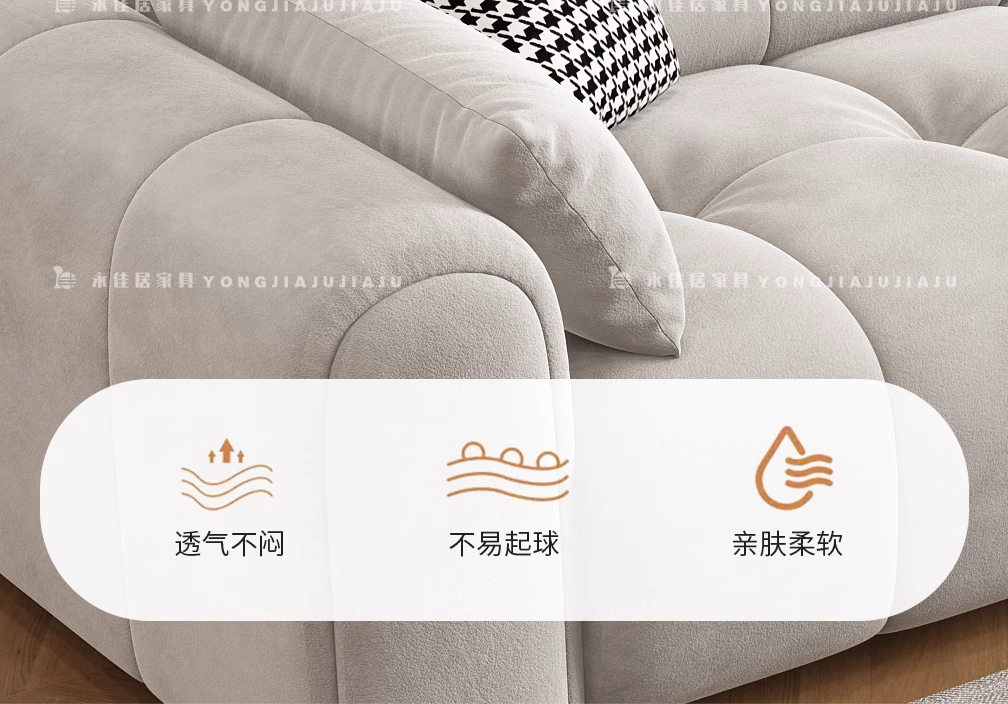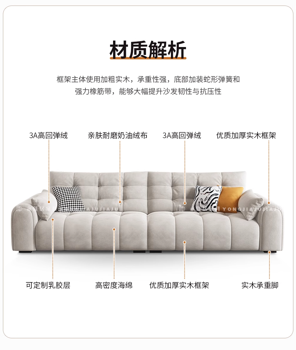 北欧意式极简奶油风简约客厅小户型奶油网红绒布三四人位直排沙发